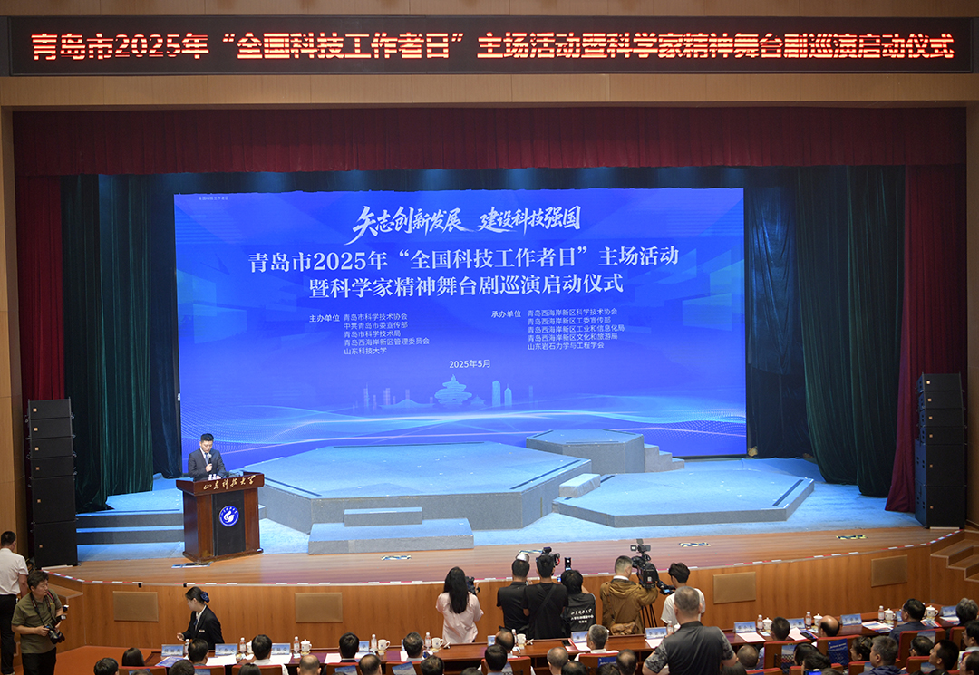 今年5月30日是第九个全国科技工作者日。5月29日,由青岛市科协、青岛市委宣传部、青岛市科技局、西海岸新区管委、山东科技大学联合主办的青岛市2025年“全国科技工作者日”主场活动暨科学家精神舞台剧巡演启动仪式在我校举行。山东省科协副主席、山东科技大学党委副书记、校长曾庆田,山东省科协党组副书记、副主席、一级巡视员廉凯致辞。青岛市委副秘书长李金国出席活动。