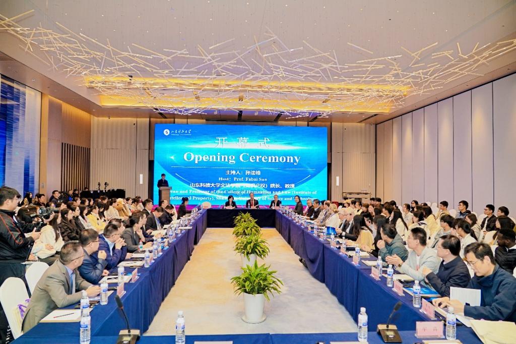 山东科技大学党委副书记郭益灵、华东政法大学数字法治研究院院长马长山、新西兰国会第52届法制委员会主席霍建强出席开幕式并致辞。开幕式由山东科技大学文法学院院长孙法柏主持。