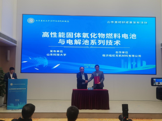 会上,学校发布了高性能固体氧化物燃料电池与电解池技术,化工学院涂宝峰研究团队在高活性、高稳定性电极催化材料和高性能固体氧化物燃料电池与电解池方面取得突破性进展,该成果可广泛应用于“电-氢-电”的制氢、储氢和发电等系统。该技术已经在临沂临虹无机材料有限公司进行产业化。会上还发布了山东大学研发的氧化铝纳米结构材料、齐鲁工业大学研发的海洋浮标与台站技术、高性能耐高温气凝胶隔热材料、滨州医学院研发的新型肿瘤靶向磁共振造影剂技术,5项成果转化合同金额达4.75亿元。(供稿:技术转移研究院 责编:徐展)