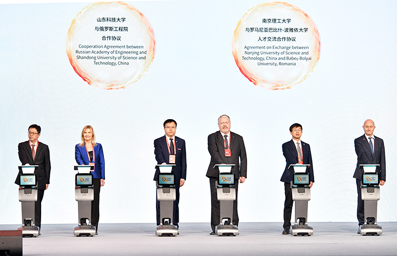 10月21日,作为全国规模最大、规格最高的国际人才展洽平台,第23届中国国际人才交流大会在上海世博中心开幕。国务委员谌贻琴以视频方式向开幕式发表致辞并宣布开幕。此次大会由人力资源社会保障部(国家外国专家局)和上海市人民政府联合主办,来自110多个国家和地区的2600多名外国专家出席开幕式。开幕式上,山东科技大学党委书记王君松与俄罗斯工程院副院长图波列夫·瓦列里代表双方签订重点人才合作协议。