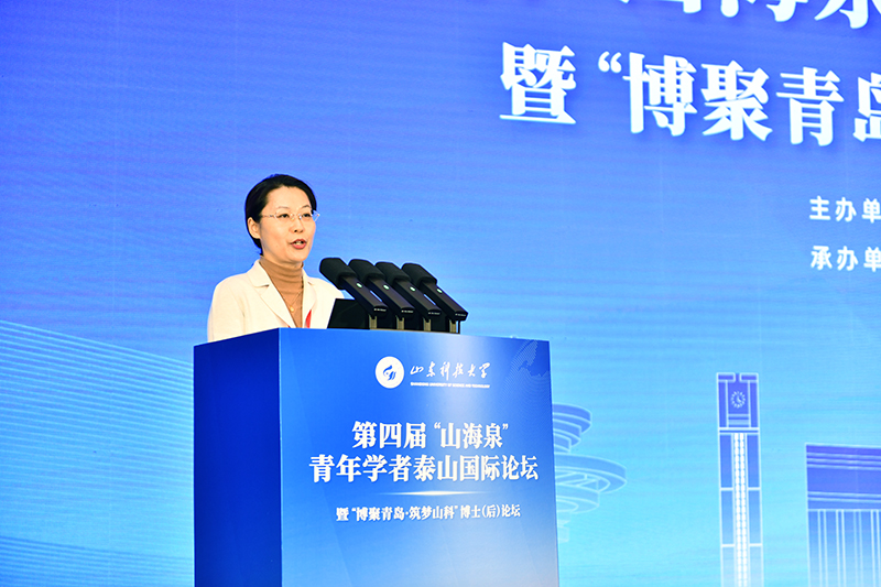 王环宇代表山东省教育厅向论坛的开幕表示祝贺,她向与会学者介绍了山东省高等教育人才工作有关情况,希望山东科技大学以此次论坛为契机,大力塑造人才引领发展新动能新优势,为加快社会主义现代化强省建设作出更大贡献。并邀请各位青年人才融入山东、扎根山东、建功山东、圆梦山东。