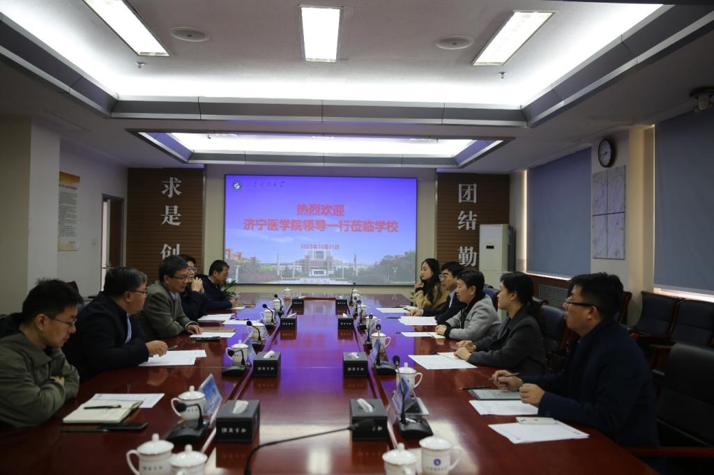 10月31日,济宁医学院党委委员、副院长王文姮一行来校调研交流,并就智慧校园建设、学生工作信息化等方面开展深入座谈。校党委常委、副校长陈绍杰主持座谈会。