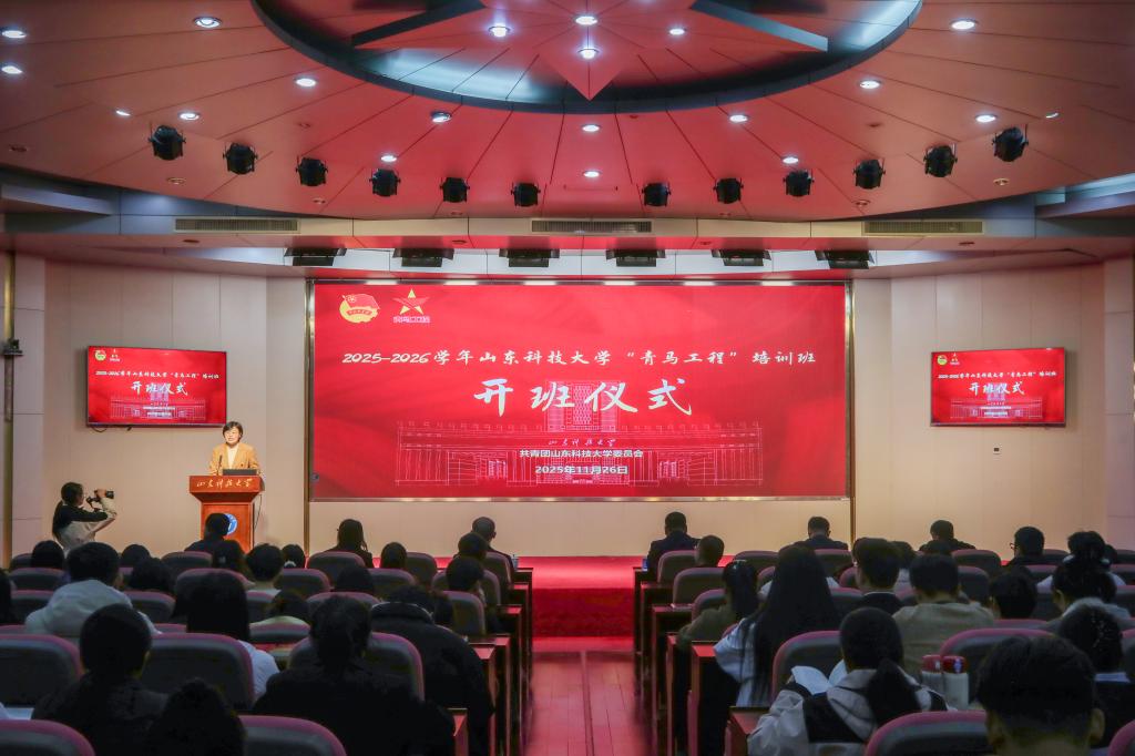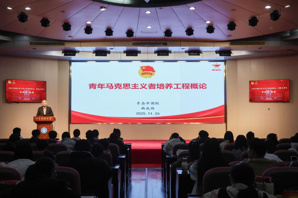 11月26日,山东科技大学2025-2026学年“青年马克思主义者培养工程”开班仪式在逸夫讲堂举行。校党委常委、副校长诸葛福民,青岛市团校分管日常工作的副校长、党总支书记曲成伟出席开班仪式。开班仪式由校团委书记高一丹主持。