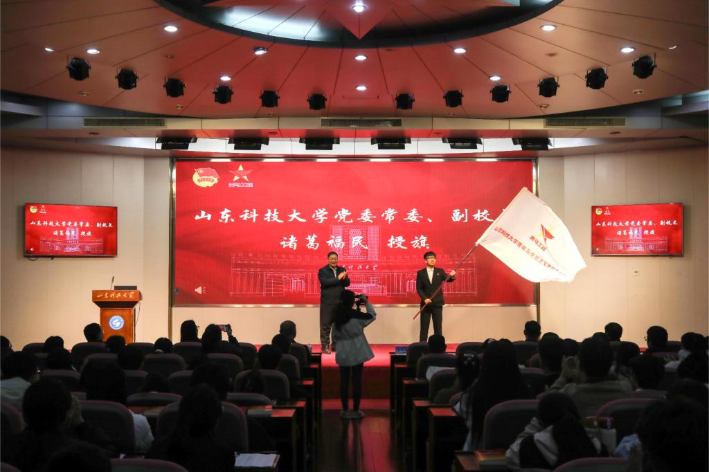 开班仪式上,诸葛福民为学员代表授旗并讲话。诸葛福民代表学校党委对入选“青马工程”的学员表示祝贺,介绍了学校“青马工程”培养情况,并对全体学员提出四点殷切希望:一要筑牢信仰之基,做追求真理、信念如磐的青马先锋;二要锤炼过硬之能,做勤学善思、本领超群的青马先锋;三要勇担时代之责,做挺膺担当、实干笃行的青马先锋;四要涵养清正之风,做心系同学、作风优良的青马先锋。他勉励学员们在学习中感悟真理力量,在实践中锤炼过硬品格,奋进新征程,建功“十五五”,在强国建设、民族复兴的伟大征程中书写山科青年的精彩答卷。