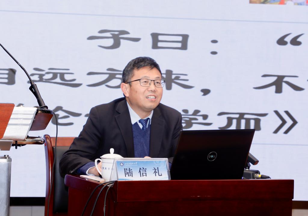 11月28日,学校举办第三期师德大讲堂暨“中华优秀传统文化大学堂”公益公开课活动,特邀中国海洋大学马克思主义学院教授、中国实学研究会理事、山东曾子研究会会长、中国传统哲学与文化研究专家陆信礼作题为“《论语》中的交友之道”专题报告。