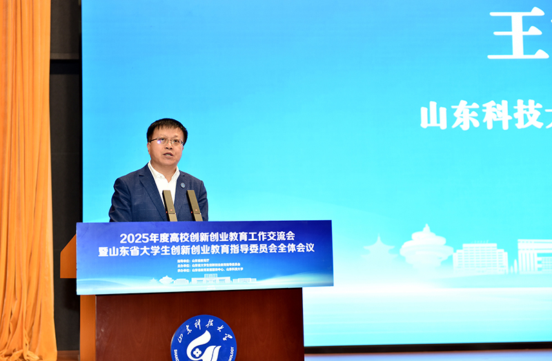王君松在致辞中表示,山东科技大学作为工科优势突出、行业特色鲜明的省属重点大学和山东省高水平大学“冲一流”建设高校,近年来各项事业取得显著成效,学科实力持续攀升,人才培养成果丰硕,人才引育成效突出,科技创新能级跃升。学校始终高度重视创新创业教育,搭建“全覆盖、多层次、强支撑”的科技创新平台,深化特色人才培养模式,完善实践育人体系,着力打造创新创业教育的“山科样板”。学校获评全国创新创业典型经验高校,在“国创计划”立项数量、全国普通高校大学生竞赛榜中均取得优异成绩。山东科技大学期待与各方携手,共同探索新时代高校创新创业教育新理念、新路径、新模式,为奋力谱写中国式现代化山东篇章作出贡献。