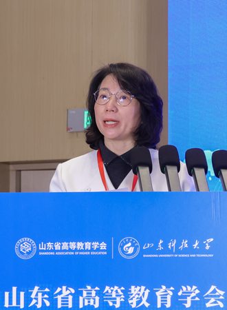 山东省高等教育学会秘书长、潍坊学院校长王霞代表山东省高等教育学会宣读《关于同意成立山东省高等教育学会人才工作分会的函》。