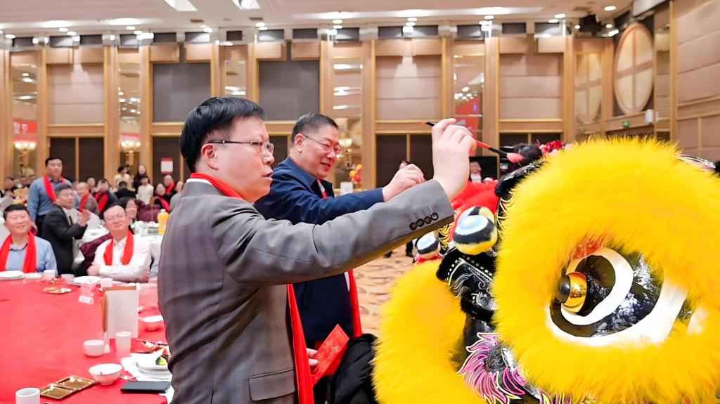 本次大会以“山科聚山海,马上成未来”为主题,由青岛校友会、产业金融校友会、嵙友马拉松协会、MBA校友会、西海岸校友会联合举办。大会期间,王君松与诸葛福民共同为醒狮点睛,寓意焕发活力、吉祥腾飞。醒狮欢腾起舞,献上“追求卓越矢志一流,同心同德共赢未来”祝福春联,生动诠释了山科人团结奋进、共赴征程的精神风貌。