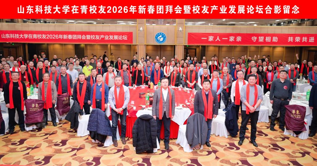 1月24日下午,山东科技大学在青校友2026年新春团拜会暨校友产业发展论坛在青岛举行。校党委书记王君松、副校长诸葛福民及兄弟高校驻青校友会代表,学校相关职能部门和学院领导老师代表,在青校友等200余人共聚一堂,畅叙情谊、共谋发展。