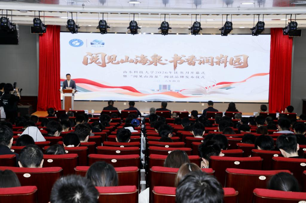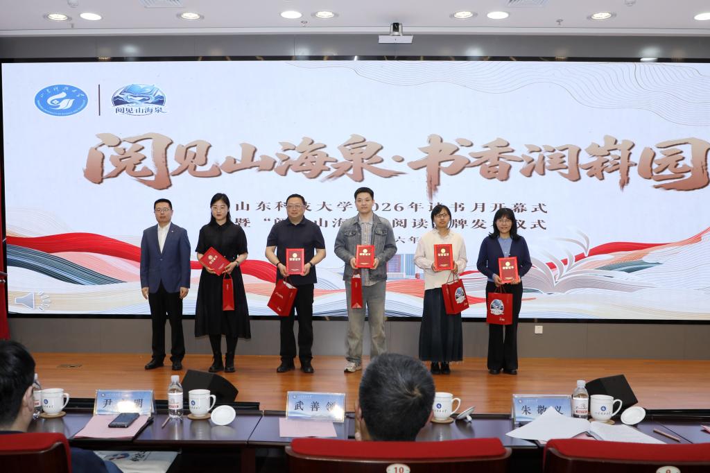 4月17日下午,山东科技大学“阅见山海泉・书香润嵙园”2026年读书月开幕式暨“阅见·山海泉”阅读品牌发布仪式举行。校党委常委、副校长朱敬义,青岛西海岸新区作协主席武善领出席仪式并讲话。校图书馆馆长宋西路主持仪式。