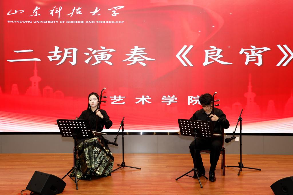 艺术学院师生带来的二胡二重奏《良宵》与古筝独奏《渔舟唱晚》,旋律悠扬婉转,意境恬淡悠远,为开幕式增添了浓郁的古典雅韵。