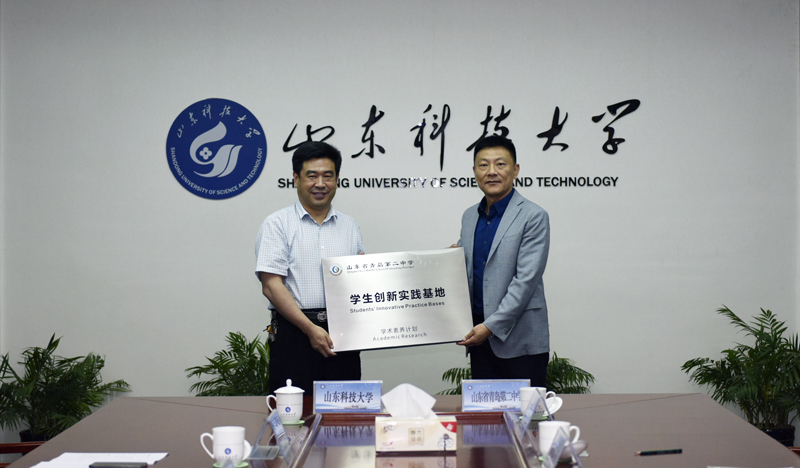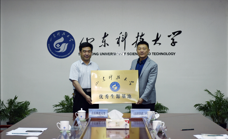 罗公利与孙先亮代表双方签订《山东科技大学与山东省青岛第二中学共建合作协议书》,曾庆良向青岛二中授“山东科技大学优秀生源基地”牌匾,青岛二中副校长李晓轮向山东科技大学授“山东省青岛第二中学学生创新实践基地”牌匾。双方就进一步合作达成了广泛共识。(通讯员:岳国伟 摄影/责编:许浩)