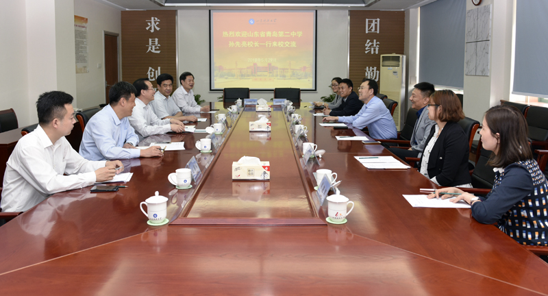 5月29日,青岛第二中学校长孙先亮一行来校交流访问,校党委书记罗公利、副校长曾庆良会见了客人。