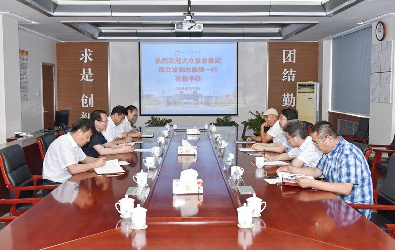 7月9日,校党委书记罗公利、副校长曾庆良会见了来校访问的大众报业集团副总编辑郑立波一行。
