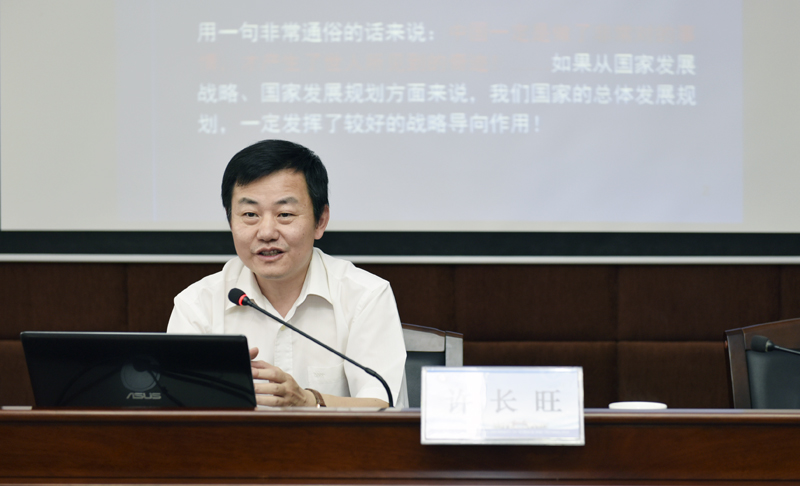 许长旺在《发展规划工作的探索与实践》的专题报告中,结合自己多年的实际工作经验,从规划工作的作用、国家规划的主要内容、规划编制的步骤和程序几个方面进行了阐释和解读,强调了国家五年规划在推动国民经济发展方面取得的重大作用,他还对学校在发展规划方面将要开展的研究工作进行了具体的指导。