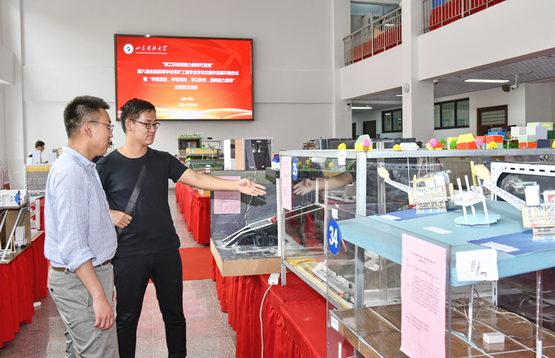 仪式结束后,与会领导参观了第八届全国高等学校采矿工程专业学生实践作品展、矿业工程国家级实验教学示范中心及山东省骨干学科力学实验教学中心。