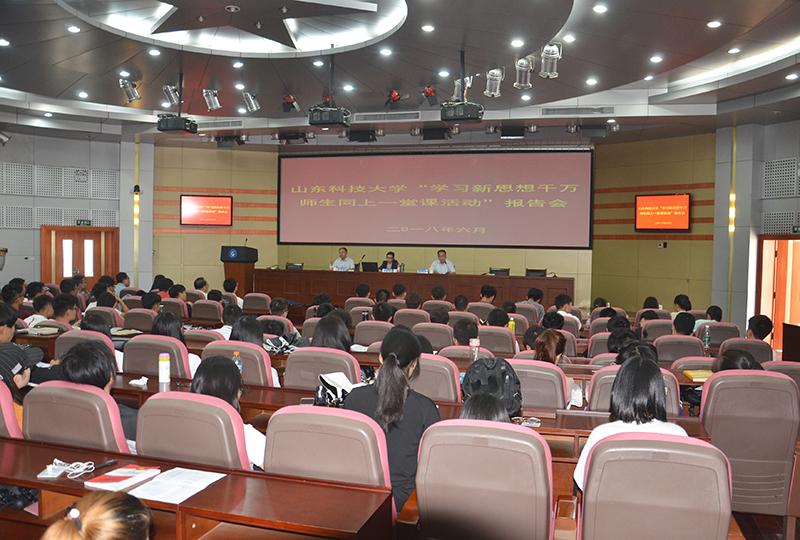 6月13日, 我校“学习新思想千万师生同上一堂课活动”报告会开讲。校党委宣传部部长李克周主持报告会,“山东高校习近平总书记重要讲话精神讲师团”专家、我校马克思主义学院副教授王忠春和化学与环境工程学院团委书记范俊峰分别为师生代表作了精彩授课。相关部门负责人及师生代表参加了报告会。