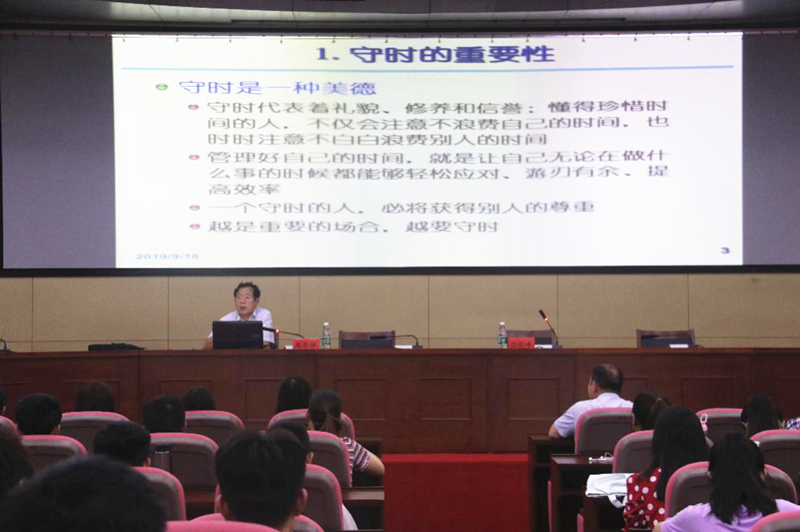 9月18日,副校长、博士生导师周东华教授在逸夫讲堂为自动化学院、电信学院2019级全体研究生作“守时与学术道德问题”专题报告。报告会由自动化院党委副书记、副院长范俊峰主持。