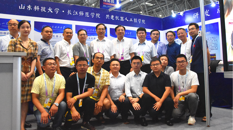 孙鹤汀应邀出席“2019中国国际智能产业博览会”的开幕式,并与长江师范学院党委书记彭寿清一同到“智博会”现场,参观了学生研发成果展和成果应用展。两校联合参展从8月26日持续到29日,山东科技大学展示了智能假肢机器人、变形移动机器人、动物机器人、喷浆机器人等6款研发机器人,参展作品得到了多位市领导、厂家和参展群众的好评。