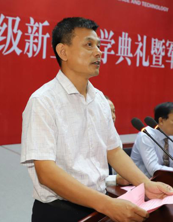 姚庆国代表全校教职工及在校学生对2019级新同学的到来表示热烈的欢迎,向承训部队的全体官兵致以崇高的敬意和诚挚的感谢。他以“笃志·致知·力行”为题与同学们畅谈人生。他表示山东科技大学是一个文化底蕴丰富的大学,在近70年的办学实践中,逐步形成了厚重的历史积淀和浓郁的山海泉文化,形成了“惟真求新”的校训和“坚韧不拔、发奋图强”的科大精神。在这个充满发展活力的校园、创新氛围浓郁的校园,希望同学们从这里扬帆起航,放飞梦想。