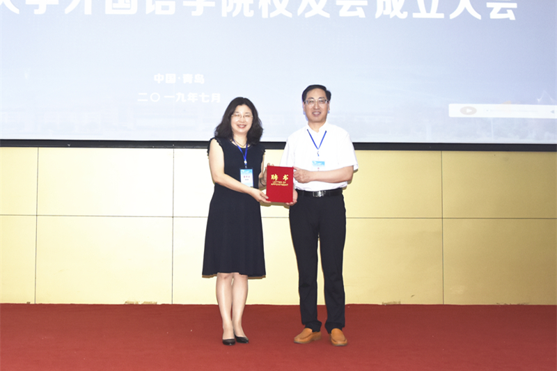 7月21日,“外国语言文学”跨学科人才培养研讨会暨山东科技大学外国语学院校友会成立大会成功举办,副校长、校友总会常务副会长孙鹤汀出席会议为外国语学院校友会授牌并致辞。