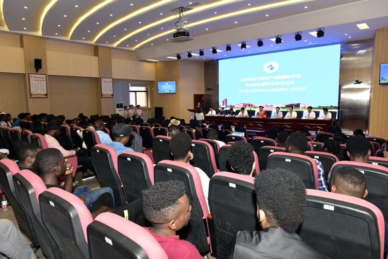 6月27日,山东科技大学举行2019届国际学生毕业典礼暨学位授予仪式。副校长孙鹤汀出席毕业典礼及学位授予仪式,教务处、研究生院、机电学院、电信学院、化工学院、交通学院、文法学院负责人,教师代表、在校生代表、全体毕业生、毕业生亲朋好友等150余人参加了典礼。典礼及仪式由国际交流合作处副处长范志坚主持。