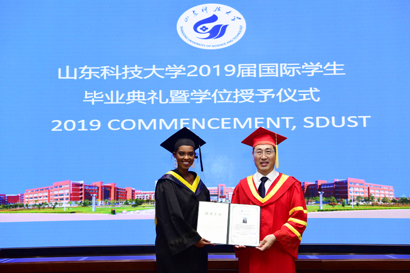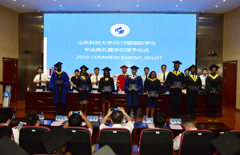 孙鹤汀代表学校向2019届国际学生毕业生表示祝贺,向为学校来华留学生教育工作付出辛勤努力的教师表示敬意,对不远万里来校参加典礼的家长朋友们表示欢迎。他说,同学们不仅在学业上取得了优异成绩,在各类文体竞赛中取得了累累硕果,而且悉心体验中国语言文化,成为传播文化,促进民心相通的友好使者,为山东科技大学增添了光彩,提升了学校的国际化氛围。他嘱托毕业生在今后的日子里一定要坚守理想,努力奋斗;不忘初心,终身学习;胸怀天下,开放包容。