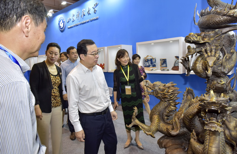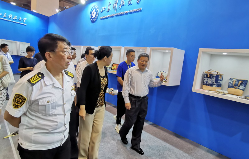 展览期间,青岛市市长孟凡利,青岛市委常委、副市长王家新分别参观了我校艺术学院展区,观看了我校师生设计的文创和旅游作品,听取了展区师生的作品介绍,高度赞扬了我校师生的创意设计。