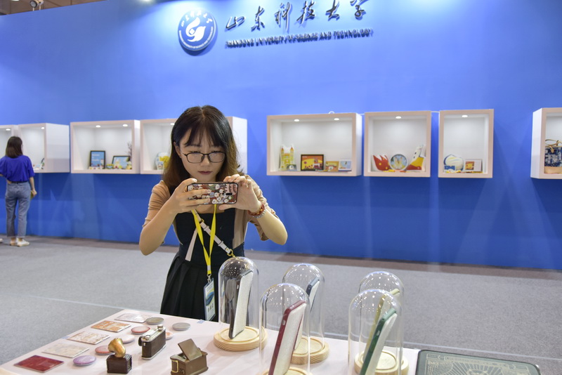 本届博览会分青岛文化旅游商品展销、全国工艺美术精品展销、大学生文创旅游设计作品三个展区,展品涵盖雕塑、漆器、抽纱刺绣、美术陶瓷、民间工艺品、编织工艺品、大学生文创产品等各类文化旅游商品。艺术学院师生设计制作的漆艺、陶艺、民间工艺品、编织工艺品等精美的文创产品亮相博览会,他们将中国传统文化运用于创作过程中,创新性地将工艺美术与文化旅游商品结合,展区内一件件巧夺天工的艺术品,展现了我校大学生的创新和创意。