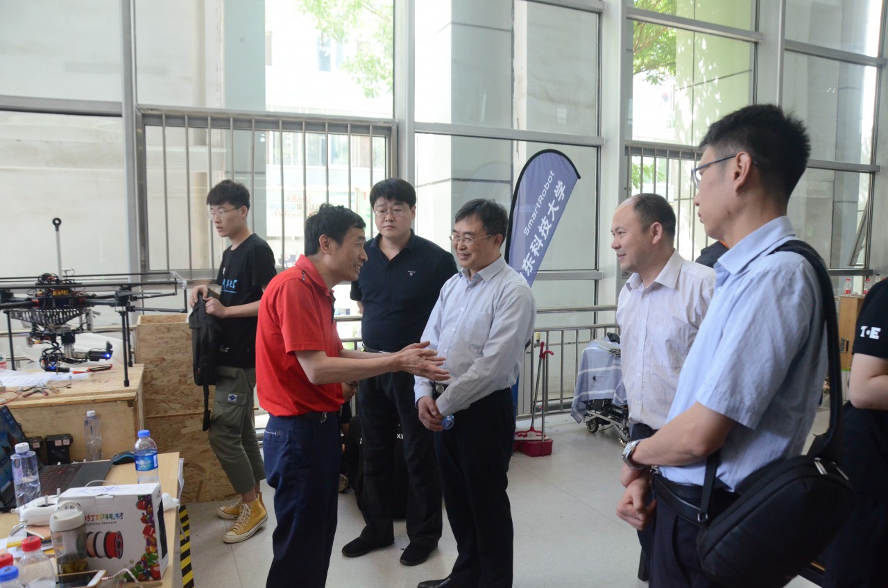 5月27日至6月2日,第十八届全国大学生机器人大赛RoboMaster2019机甲大师赛北部赛区比赛在中国石油大学(北京)体育馆举行,我校SmartRobot参赛队(指导教师:高正中、赵猛)荣获北部赛区一等奖,连续五年晋级全国总决赛。副校长高建广到现场指导。大疆创新RoboMaster事业部赛事运营总监杨明辉接待了高建广一行,双方就人才培养、课程设置、企业需求、人才招聘等方面进行了深入探讨与交流。校团委书记尹立明、自动化学院负责人参加以上活动。