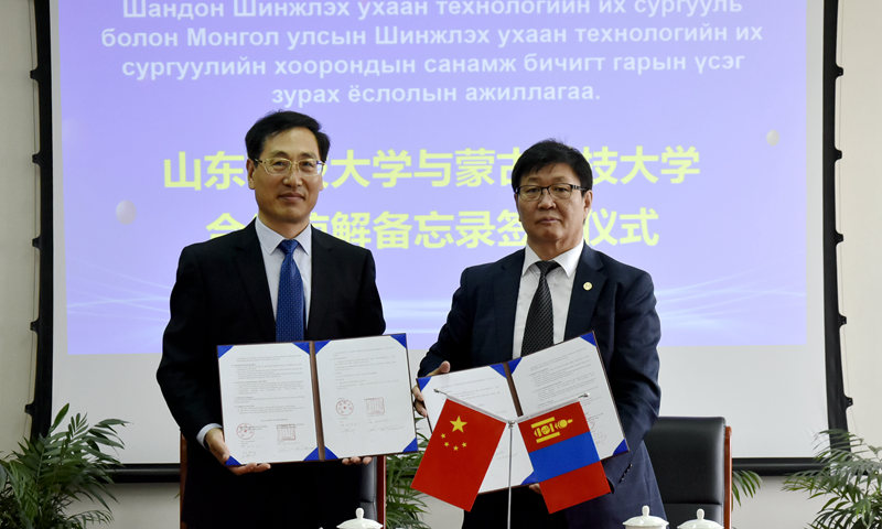 会见后,双方签署了《中国山东科技大学与蒙古国蒙古科技大学合作与交流谅解备忘录》,双方一致同意在蒙联合设立非独立法人中蒙合作办学机构——中蒙国际矿业学院,开展测绘工程、采矿工程(智能开采)等专业本科生和研究生的联合培养,并依托“中蒙矿产资源绿色智能开发国际研究中心”共同开展矿产资源绿色智能开采、智能测绘、环境监测与保护等方面的研究。