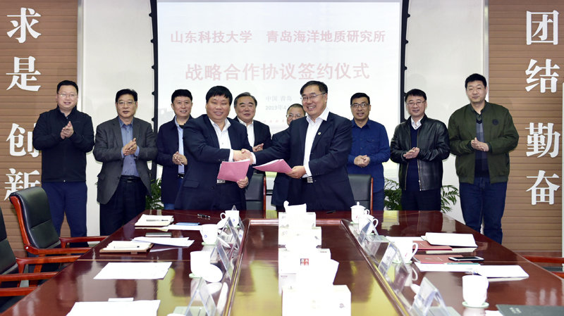 4月9日,山东科技大学与青岛海洋地质研究所战略合作协议签约仪式在山东科技大学举行,山东科技大学校长姚庆国和青岛海洋地质研究所所长吴能友出席签约仪式并致辞。山东科技大学副校长刘孟德与青岛海洋地质研究所副所长赵洪伟分别代表双方单位签订合作协议。