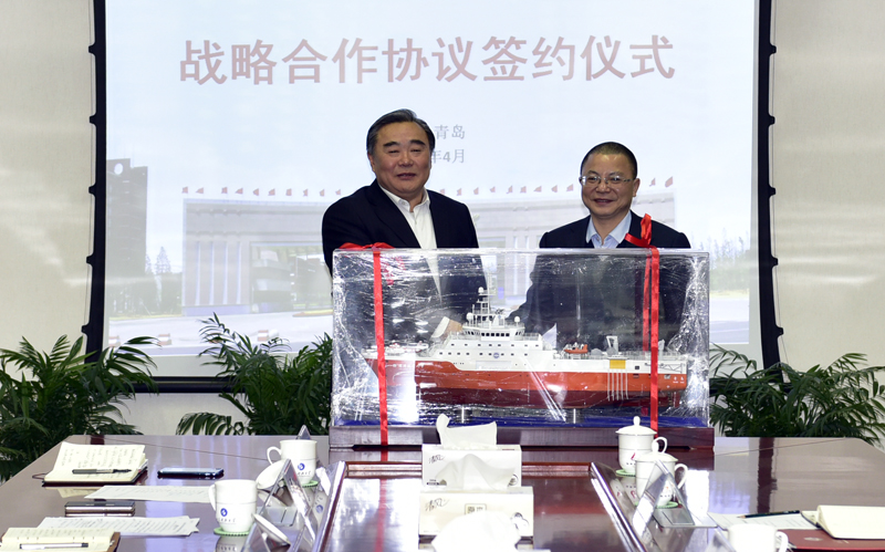 签约仪式结束后,吴能友向姚庆国赠送了“海洋地质九号”(地质)调查船模型。“海洋地质九号”是中国领先的同时具备专业地震调查与综合地质地球物理调查功能的调查船,国际先进的以短道距地震电缆二维(三维)多道地震为主,集地球物理测量、水文环境测量和地质取样技术等为一体的多功能综合物探(地质)调查船,2017年12月28日入列以来,累计航程25000余海里,完成多波束、浅地层剖面、海洋重力磁力等测线各13290公里,二维多道地震测量942公里,宽线双缆多道地震测量2759公里。在海洋基础地质调查、海域油气资源勘查、深海探测技术应用等方面取得了重要成果。吴能友表示,合作协议签订后,该船将向山东科技大学师生全面开放,助力学校相关科学研究项目的开展。
