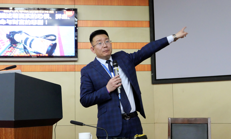 “火灾发生后,你还用湿毛巾捂口鼻,匍匐前进吗”“高楼失火,是朝楼下逃还是往楼顶跑?”4月11日,青岛市都市消防培训中心主任孙绍波专程来到山东科技大学,在逸夫讲堂为大家作了一场精彩的消防知识讲座,厘清了一些错误的防火逃生误区,传授了最新、实用的消防知识,受到热烈欢迎。