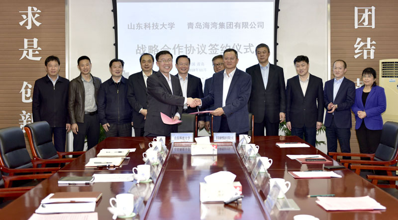 11月14日,为服务新旧动能转换重大工程,深化校企合作,加速科技成果转化,共建技术创新体系,山东科技大学与青岛海湾集团有限公司签订了战略合作协议。