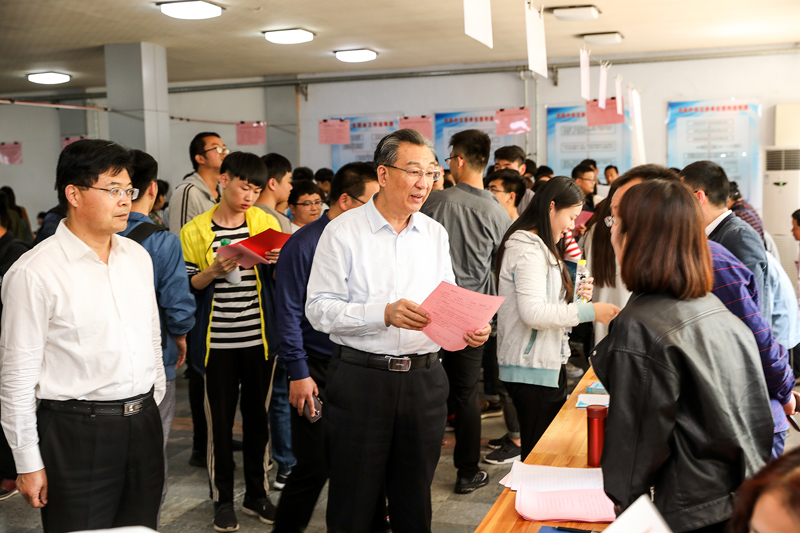 5月22日,由泰安市高新区人事劳动局主办,泰安校区、泰山科技学院承办的泰安市高新区重点企业专场招聘会在大学生就业创业指导中心大厅举办,副校长兼泰安校区党委书记、管委会主任,泰山科技学院党委书记、院长王少鹏到招聘会现场指导工作。