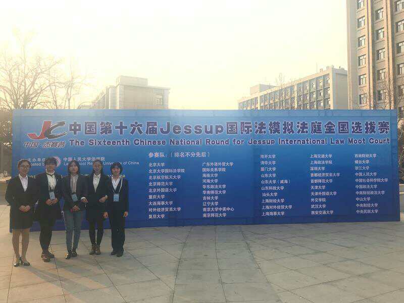 本次比赛共有包括北大、清华、人大、复旦、武大等49所著名高校参加,规模为历届之最。我校代表队作为第一次参赛的新队伍,取得赛区十六强的好成绩,实现了重大突破。该队伍全部由本科生组成,由文法学院韩天竹老师担任教练,张芷毓、魏勇、杨淑涵、胡可、龚欣怡组成的代表队参赛(2014级的张芷毓和魏勇作为比赛的oral;2016级吴舒作为未来预备队员随行学习)。
