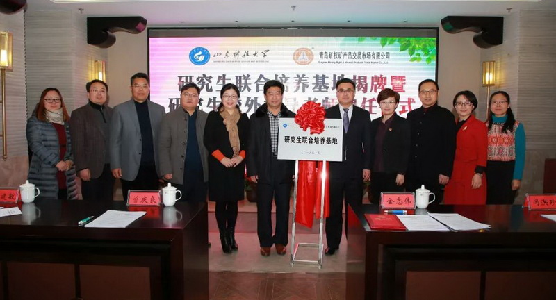 1月9日,山东科技大学与青岛矿权矿产品交易市场有限公司研究生联合培养基地揭牌暨研究生校外指导老师聘任仪式在青岛西海岸新区举行。副校长曾庆良,青岛矿权矿产品交易市场有限公司总裁金志伟,青岛西海岸新区团委书记、党组书记冯洪珍,青岛万嘉集运物流有限公司董事长吴绍勇、总经理王晖,研究生院、外国语学院负责人及外国语学院研究生代表等参加仪式。仪式由外国语学院党委书记李双立主持。