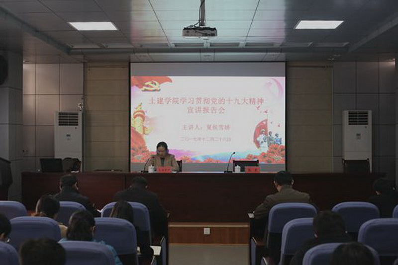 12月26日,校宣讲团成员、校纪委书记夏侯雪娇为土建学院师生作党的十九大精神宣讲报告。土建学院全体教职工、学生代表等聆听了报告。报告会由土建学院党委书记张东主持。
