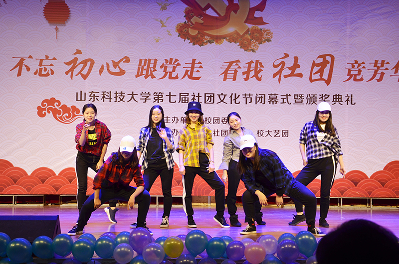 山东科技大学第七届社团文化节闭幕式暨颁奖晚会以“不忘初心跟党走,看我社团竞芳华”为主题。晚会在大学生艺术团表演的舞蹈《忆江南》的美妙画面中拉开序幕,整场晚会节目丰富多彩。书画协会、大学生艺术团表演的《青春我行,魄动国魂》《粉墨人生》和《忆青衣》带领大家领略了中国传统文化的魅力;N.O.B.街舞协会、CUBA篮球宝贝协会及精武龙魂双节棍协会和梅花桩武术协会的联合展示,让大家不时发出阵阵惊叹;望月诗社、国旗护卫队的诗朗诵《我们的路》、歌曲《我和我的祖国》让现场激情震撼;相声《爱社团爱生活》、歌曲《追光者》的精彩演出使现场充满爱的温馨与感动。晚会在观众的依依不舍中落下帷幕。