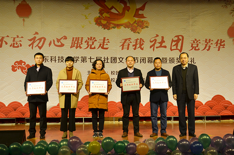 会上还进行了山东科技大学学生社团评优奖项颁奖典礼。大学生绿色使者协会等8个协会被授予“山东科技大学优秀社团”称号,nob街舞协会马旭等5名同学被授予“山东科技大学社团达人”称号,Nob街舞协会刘晓蕾等5人被授予“山东科技大学优秀社团指导老师”称号,文法学院团委等5个团委被授予“山东科技大学优秀组织单位”称号。与会领导向优秀协会代表和优秀个人颁奖并寄语社团的同学,勉励大学生社团积极开拓创新,立足校园文化,促进大学生社团规范化、内涵化、品牌化发展,努力提升青年学生的文化素质、艺术修养和实践能力,在学校育人工作中发挥更为积极的作用。