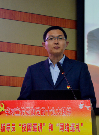 诸葛福民在主持仪式时表示,6位辅导员结合自身对党的十九大精神的学习与理解,立足把岗位摆进去,把工作摆进去,把自己摆进去,从不同角度对十九大精神进行了讲解,宣讲内容联系实际,深入浅出,具有较强的政治性和理论性,希望广大学生工作干部和全体学生党员按照会议的要求,积极开展形式多样的宣讲学习活动,在学懂弄通做实上下功夫,真正让十九大精神武装头脑,指导实践,推动学习和工作。
