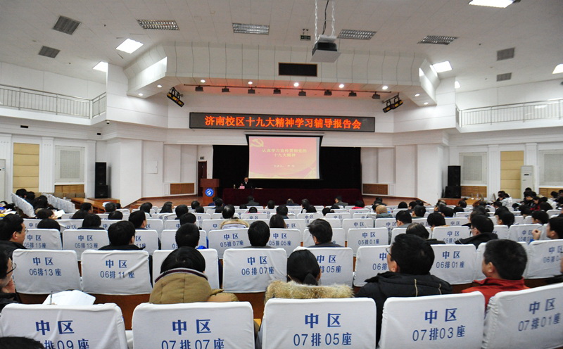 12月12日,济南校区举办十九大精神学习辅导报告会,校学习贯彻党的十九大精神宣讲团副团长,校党委副书记兼济南校区党委书记、管委会主任尹华为校区师生作了题为《认真学习宣传贯彻党的十九大精神》的报告。校区全体教职工,校区、系学生会干部,各班班长、团支部书记参加了报告会。
