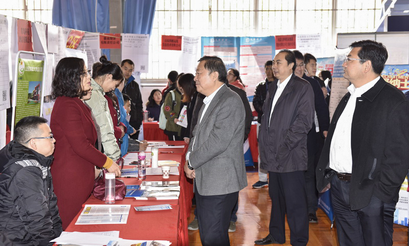 校领导袁俊平、尹华、刘新民,学校有关部门负责人、各学院主要负责人来到招聘会现场,与参加招聘会的用人单位和学生代表深入交谈,详细了解招聘和求职情况。