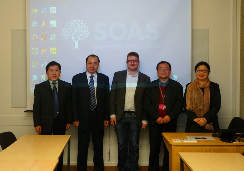 11月8日,代表团一行访问了伦敦大学亚非学院,与东亚文化与语言系主任Nathan Hill、语言与文化学院翻译研究中心负责人Nana Sato-Rossberg、中文系教师宋连谊等进行了亲切会谈。访问期间,代表团对亚非学院的发展历史、专业设置、教学模式、研究方向、学术资源有了全方位的了解,并介绍了山东科技大学的基本情况,特别是外语语言与翻译专业项目的近况,表示期待能与亚非学院在英汉口笔译实践、翻译学研究等领域进行合作。宋连谊还对代表团一行详细介绍了中国研究院开展的社会、经济、文化相关的研究项目,期待在这一领域与山东科技大学开展教师培训与交流。