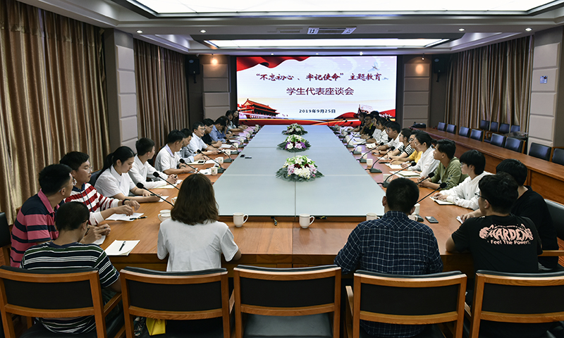 根据学校“不忘初心、牢记使命”主题教育实施方案和领导小组工作安排,9月25日,副校长高建广主持召开“不忘初心、牢记使命”主题教育学生代表座谈会,听取学生对学校有关工作的意见和建议。来自各学院的23名学生代表,学生工作处(部)、校团委、教务处、研究生院负责人及新疆内派教师代表参加座谈会。