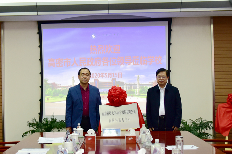 曾庆田与王文琦为“新材料研发中心”和“高密市驻青招才引智工作站”揭牌。