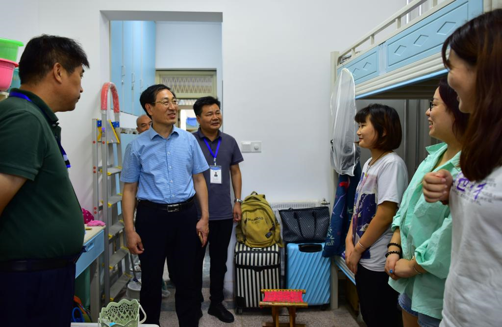 9月2日,副校长兼济南校区党工委书记、管委主任孙鹤汀检查济南校区2020年秋季学期学生返校情况和各项服务保障工作。济南校区党工委副书记贾长响、管委副主任郭加书和党政办公室、学团工作部、后勤管理部等相关部门负责人陪同检查。