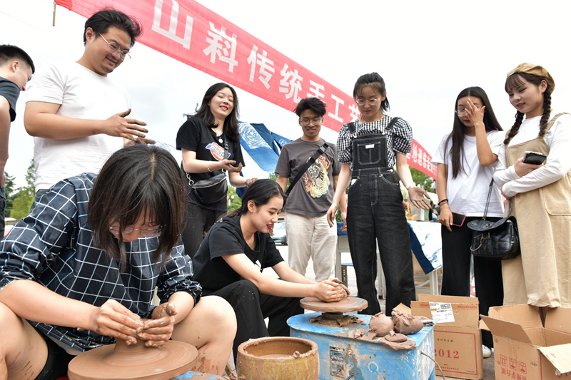 “我们的山嵙传统手工艺传承教育基地刚刚获批青岛市科普基地,今天举办了这个展演,是对基地部分作品的一个展示,希望让同学们在动手参与手工艺品制作的过程中,感受中国传统手工艺的艺术魅力,建立文化自信,也进一步加强校园美育,推动岛城文化繁荣,弘扬中国传统文化。艺术学院副院长赵娜向记者表示。