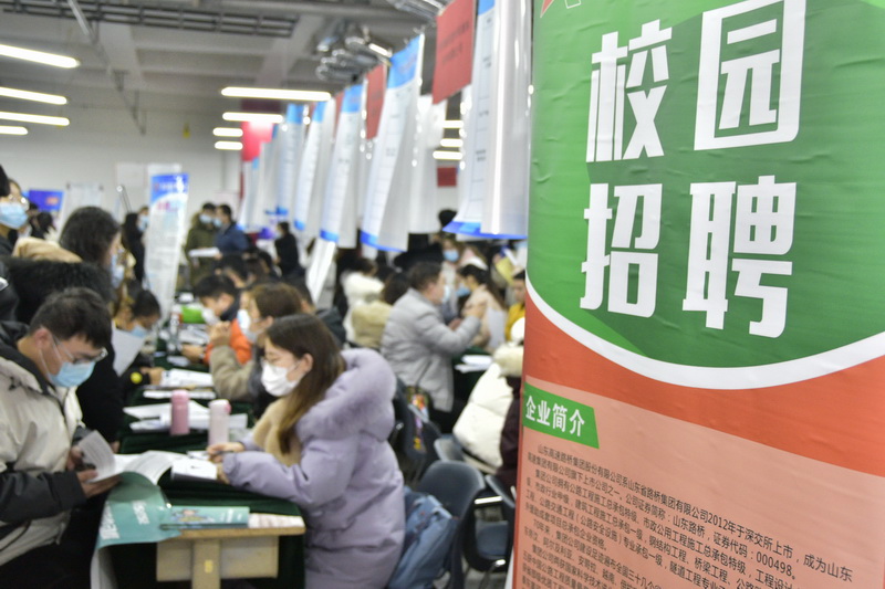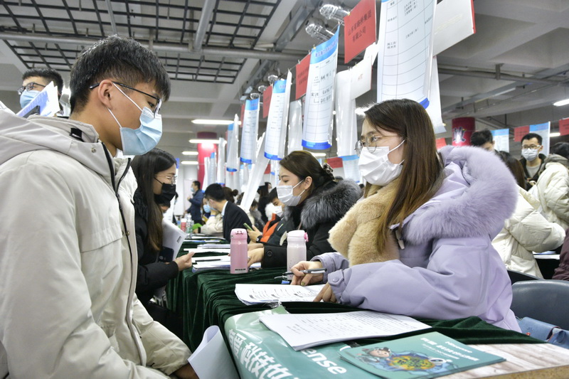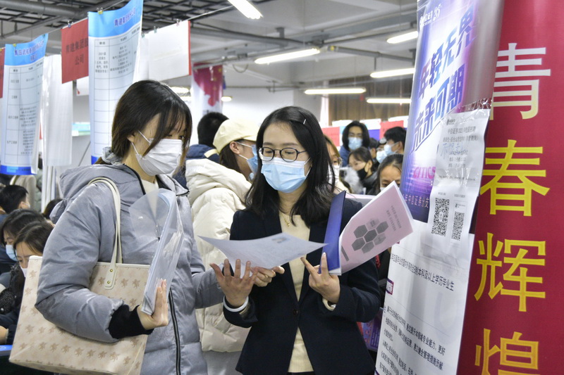 招聘会现场,大学生就业指导中心还提供了“简历诊断”和“网签答疑”就业指导服务,退役复学学生也在现场为毕业生宣传大学生应征入伍相关政策。(通讯员:李雷 摄影:韩洪烁)